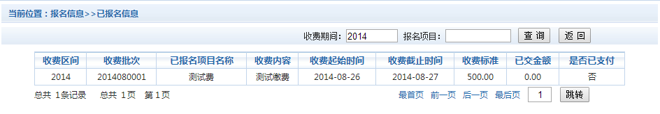 已报名信息,可以点击“已报名信息”按钮,查询如下图所示