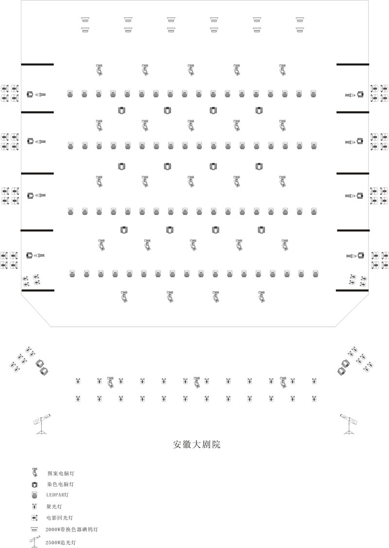 桃李杯比赛剧场舞台尺寸及灯光图 来源: 发布时间:2012-07-30 00:00:00 浏览次数: 一、剧场舞台尺寸:1、安徽大剧院台口宽15.5m 深21m表演区15m 台高8m2、合肥大剧院台口宽18m 深40m表演区15m 台高12m3、省歌舞剧院台口宽14m 深18m表演区15m 台高8m 二、剧场灯光图