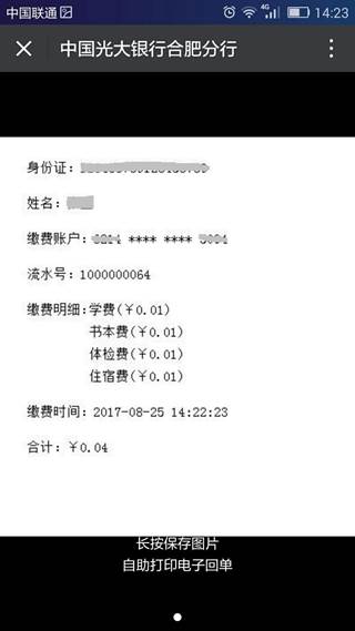 用户可点击【缴费凭证】,长按图片保存,自助打印。网上缴费学生的相关收费单据,将在开学后统一发放至所在系部,请网上缴费学生至辅导员处领取。