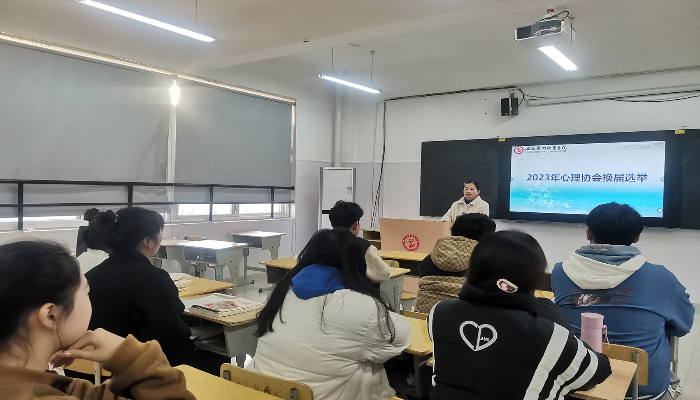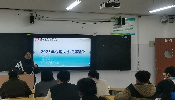 2023年2月27日晚上17点,心理协会在美术楼501教室举办了心理协会换届大会,心理健康教育中心各位教师及竞选学生参加了会议。会议由教师任偲主持。