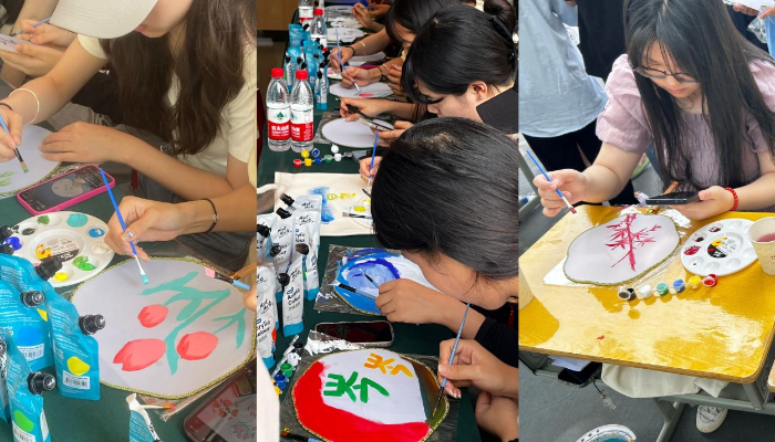 在DIY团扇、帆布袋活动中,同学们通过手绘的方式传递和表达内心世界,在艺术创作中表达自己,缓解压力。在阳光漂流瓶活动中,同学们将手写的祝福放入小瓶中,在校园随机分发给其他同学,让温暖的祝福在校园中传递。