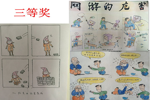 本次心理漫画大赛,得到了学院领导的大力支持,各专业系、学院及中专管理中心的积极响应。此次活动共收到了41份作品,作品皆反映学生之间的各种人际关系问题,包括宿舍矛盾、家庭环境等,体现对幸福人生的追求。经过相关教师的精心筛选,美术系章金水同学的作品《心理健康教育课》荣获一等奖,美术系倪天伦同学的作品《狂躁症》,戏剧系黄月月同学的作品《不要想太多》荣获二等奖,中专管理中心方思佳同学的作品《心防是由伤害筑成》、陈瑾同学的作品《任何自我评价都包含有自我辩护》和张状状同学的作品《网游的危害》荣获三等奖。