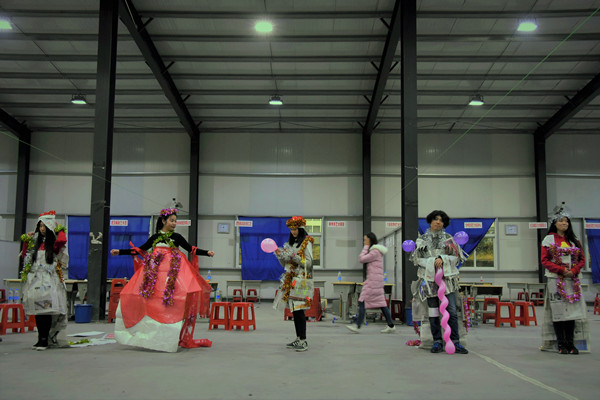 然后所有同学分成5组,以组为单位依次进行“指压板传递走”、“ 你来比划我来猜”、“ 设计大赛”三个比赛。同学们在活动中既获得了快乐,又培养了彼此之间的合作性、默契性及创作性。