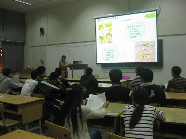 为普及心理学知识,丰富学生的课余生活,学生处、心理健康教育中心和 “阳光心苑”心理健康协会于10月29日、11月5日分别在宣城校区和丹霞校区对班级心理委员和阳光心苑成员进行了一场讲座。讲座的主题是“走进心理学”。