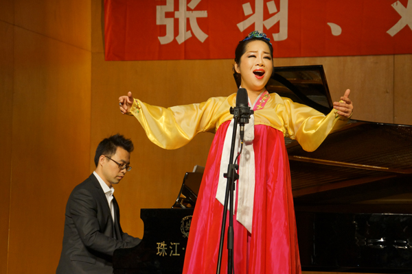 4月3日晚7:30分,音乐系2012-2013教师技能展示系列•张羽、刘娜“琴与声”音乐会在永利欢乐娱人城实验剧场举行。张羽毕业于上海音乐学院民乐系古筝专业,曾先后师从过多位老师,并获得过1998年华东地区古筝大赛一等奖,2000年安徽省第六届艺术节一等奖,2008年上海之春国际艺术节优秀教师奖、园丁奖,大学期间曾出访韩国等地。刘娜老师2009年获第七届中国音乐金钟奖安徽赛区美声组三等奖,2010年获安徽省第九届艺术节美声组二等奖,并多次参与接待演出。音乐会始于琴歌《阳关三叠》,结束于朝鲜族歌曲《长鼓敲起来》。两位青年教师的精彩演出不时赢得阵阵掌声。本场音乐会是音乐系2012-2013教师技能展示系列音乐会的第二场。(音乐系办公室 特约摄影:崔新国)