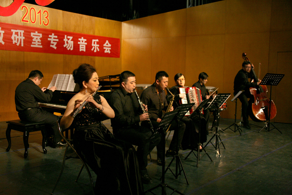 2013年4月19日晚7:30分,音乐系2012-2013教师技能展示系列•管弦教研室音乐会在永利欢乐娱人城实验剧场举行。共有七位老师参加本场的展示。老师们经过精心的准备和认真的排练,使演出收到了预期的好效果。短短一个小时,给师生们带来了一台赏心悦目的音乐节目。(音乐系办公室 特约摄影:崔新国)