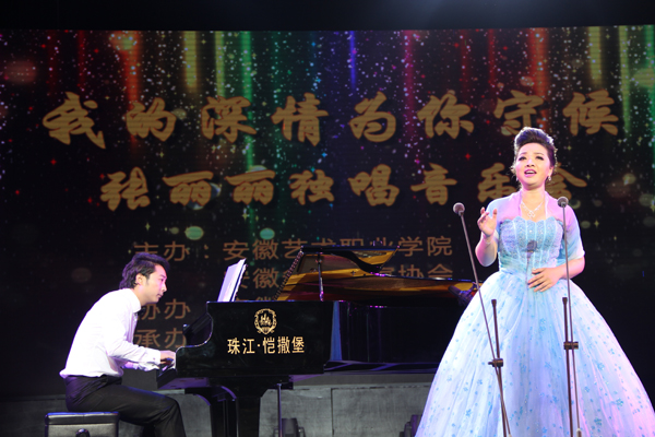 音乐会由曹玉萍教授担任艺术指导,赵惠林老师担任钢琴伴奏,安徽省歌舞剧院歌剧团团长吴多斐友情助演。本场音乐会共演唱了十五首曲目,有用意大利语演唱的咏叹调《你知道吗?好妈妈》、用俄语演唱的咏叹调《我悲伤啊,我痛苦》、及用英文演唱的《夏日里》。此外,还有用德文演唱的舒伯特的《鳟鱼》及《暮春》,其中中国歌曲《我的深情为你守侯》和蒙古民歌《鸿雁》深受广大观众喜爱,赢得了热烈的掌声。最后,张丽丽与吴多斐合唱的《长江之歌》把现场气氛推向了高潮。本次音乐会张丽丽优美动听的声音、富有表现力的乐感,扎实的基本功得到了学院领导、老师和同学们的一致好评。