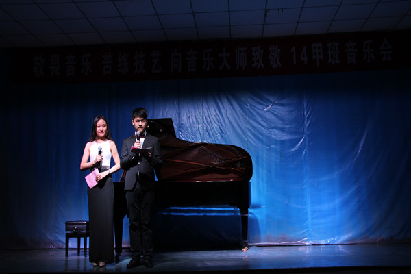 六月十六日晚,在永利欢乐娱人城宣称路校区音乐厅,音乐系14音乐表演甲班全体同学,在辅导员兼视唱练耳教师张婉侠的辅导和带领下,成功的举办了主题为:“敬畏音乐、苦练技艺,向音乐大师致敬”的班级音乐会。