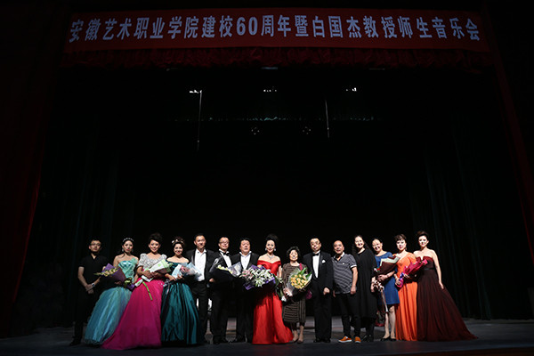 白国杰教授曾在永利欢乐娱人城(安徽艺术学校)音乐系执教多年,曾荣获安徽省首届声乐比赛一等奖,在全省声乐届享有很高的声望。借调空政歌舞团期间曾参演歌剧 《江姐》,受到党和国家领导人的亲切接见。在迎来永利欢乐娱人城建校60周年之际,白国杰教授师生同台一展歌喉,向声乐艺术致敬,为母校华诞献礼。