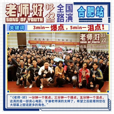 近日,以“我们最好的时光”为主题的影片《老师•好》在全国院线热映。戏剧与传媒学院2010级影视表演班毕业生郜玄铭作为主演之一回到合肥参加路演。戏剧与传媒学院表演专业师生受邀观看了影片。
