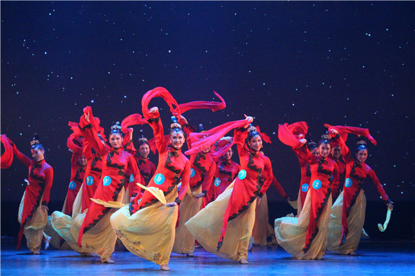 演出在基训技术技巧展示中拉开帷幕,几组基本功编排别出心裁,充分展现了我系学生过硬的素质,赢得了全场热烈的掌声;民间舞部分,展示内容包括蒙、藏、维、朝、傣族舞蹈以及安徽花鼓灯、鼓子秧歌、胶州秧歌等舞蹈样式,丰富多彩;剧目部分,有动感的国标舞《抖动》、清新的《致青春》;唯美的中国舞《风酥雨忆》、饱含深情的《我等你》、充满汉唐情怀的《桃夭》和融合力量与美感的《奔腾》。整场演出内容丰富多彩,美轮美奂,赢得了用人单位的一致好评。