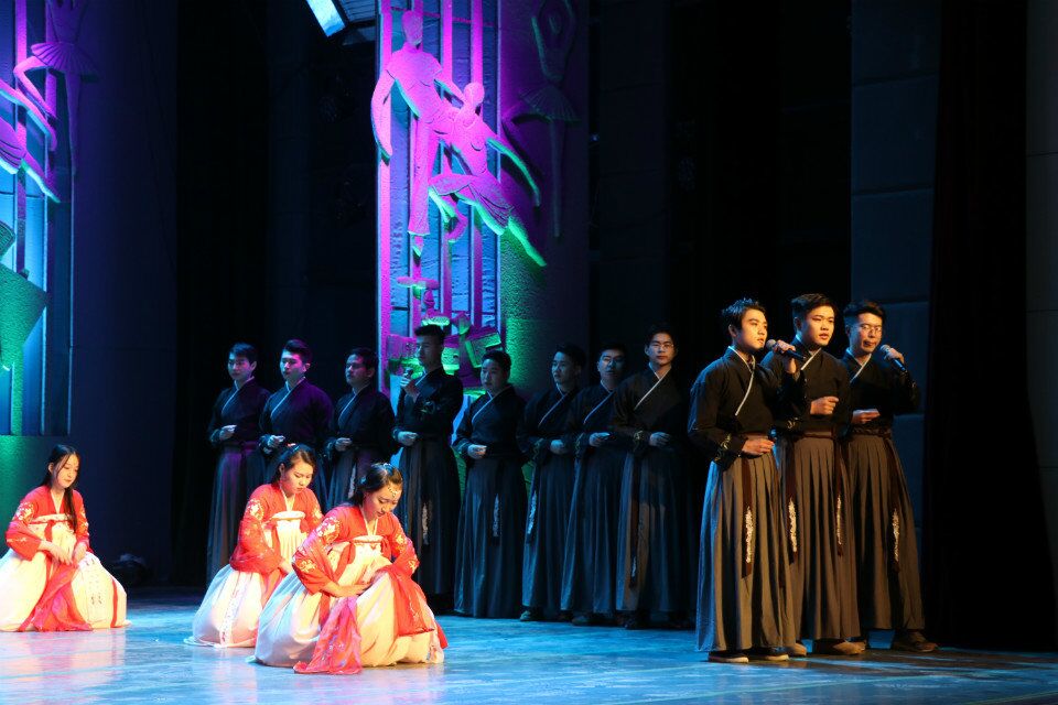 比赛以团体吟诵的方式进行,各班代表队的表现可圈可点,整场比赛“好戏连台”。选手各展所长,或慷慨激越直抒壮志,或浅酌低唱慢叙离愁,或峨冠博带古风盎然,或解读名篇新颖幽默。在美轮美奂的PPT背景和古朴悠扬的配乐的烘托下,选手们将自身情感融入经典名篇,声情并茂、抑扬顿挫地诠释了古典诗词的韵味,而且加上了独具特色的创意表演,使比赛高潮迭起,精彩纷呈。经过激烈的角逐,最终由16数媒影视《水调歌头》和17平面3班《将进酒》并列一等奖;16平面2班《卜算子.我住长江头》和16动漫2班《将进酒》获二等奖;17平面1班《沁园春长沙》17平面2班《蒹葭》 17动漫2班《祖国颂》获三等奖。