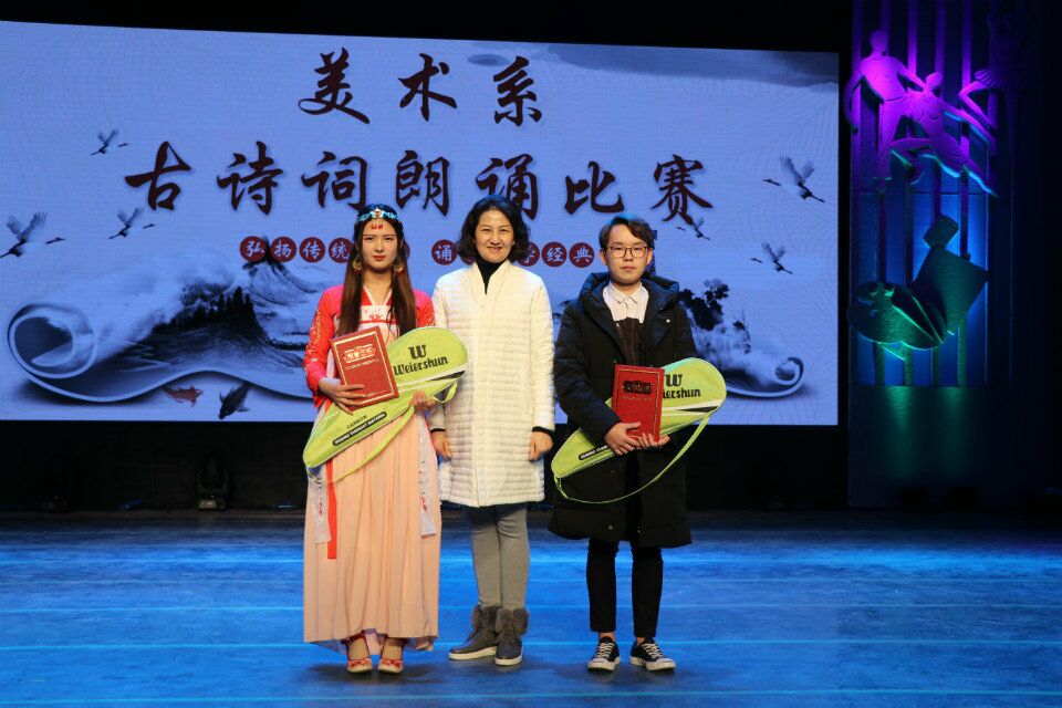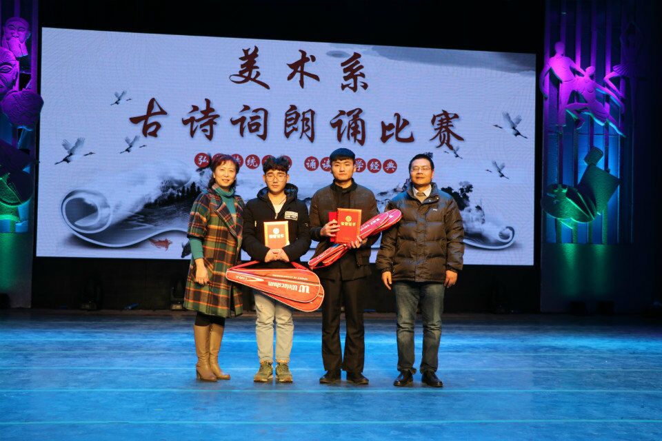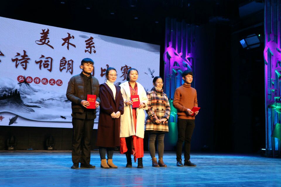 为了响应习总书记文化自信的号召,进一步活跃校园文化氛围,加强学风建设,丰富同学们的课余文化生活,弘扬传统文化,陶冶思想情操,加深学生们对传统文化的理解,提高广大同学对古典诗歌的欣赏水平、提高鉴赏能力,美术系于12月12日在宣城路校区举办美术系首届古诗词朗诵比赛,给美术系全体学生一个展示自我的舞台。