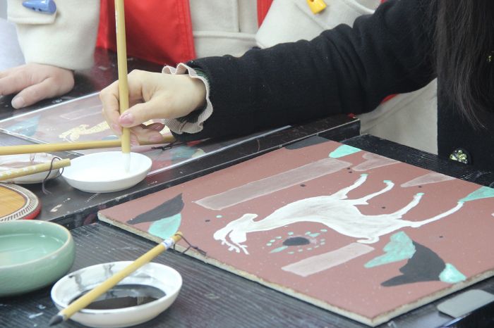 随后,大家拿起画笔,开始进行壁画《九色鹿》的绘制。此次壁画的绘制采用了传统的工艺,以泥板作为壁画绘制的载体,选用矿物质颜料进行绘制,充分将美学熏陶与文化传承相结合,让大家充分感受到了敦煌壁画的材质美感,通过亲手绘制壁画作品,参加活动的女职工们直观感受到了中国文化的大美,在优秀传统文化的熏陶中陶冶了情操,丰富自身的精神世界,深刻认识了文化传承的意义和价值。