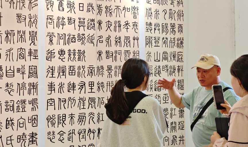 策展人刘冲老师向来访嘉宾介绍了本次展览的宗旨、特色和亮点。他认为,书法是中华优秀传统文化的瑰宝,学生们通过书法课程的学习,不仅提升了书写技能,更在笔墨间传达出了对中华优秀传统文化的理解。