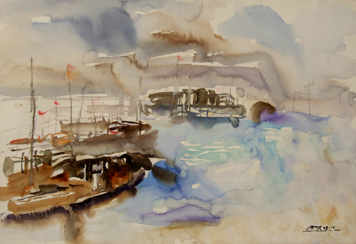 水粉画:徽州情——黑白交响曲之一
