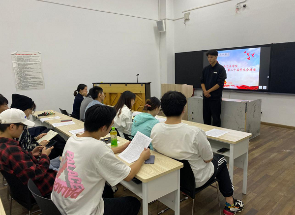 汪淑婷老师作了选举前发言,先总结了上一年度的学生工作,指出了需要改进的地方。其次,勉励学生会干部“享受过程,不执念于结果”,正确看待得失、正确看待高低、正确看待进退,对以19级同学为中心的新一届学生会寄予了期望。随后,各候选人开始竞选演讲。演讲结束后进入了答辩环节,最终票选出部长和副部长。