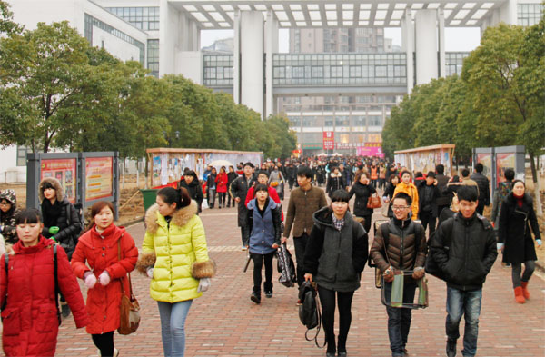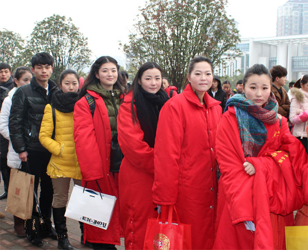 2月8日清晨,2014年省外院校在皖艺术类招生考试永利欢乐娱人城考点门前人头攒动。考生们肩背画夹,手提乐器,在工作人员的引导下有序进入考场。
