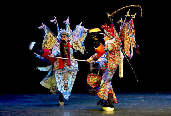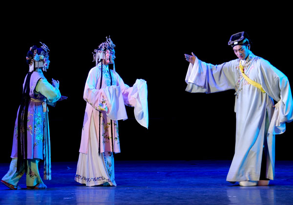 本场展示为综合场展演,以基础训练课展示《黄梅戏身韵》及钢琴伴奏、戏曲音乐琵琶独奏展示、京剧《镇潭州》选段表演等多种展示形式,全方位展现了戏曲系不同专业、不同行当的中青年教师扎实的功底和过硬的舞台技能。展示还展演了黄梅戏专业学生的参赛剧目《戏牡丹》、《女驸马》选段“花园”、《天仙配》选段“路遇”等,学生们的表演无论是扮相、唱腔还是招式,都体现出专业训练获得的素养与技能,赢得了观众的喝彩与好评。