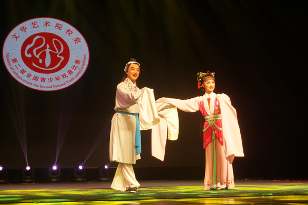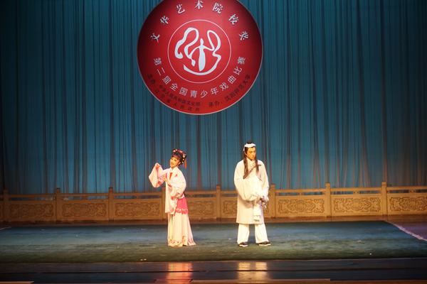 中华人民共和国文化部、辽宁省人民政府主办,沈阳师范大学承办的“文华艺术院校奖――第二届全国青少年戏曲比赛”于8月15日至20日在沈阳举行。全国31所艺术院校的127名参赛选手齐聚沈阳,展开激烈的角逐。我院戏曲系黄梅戏表演专业学生胡磊、侯婷婷顺利通过复赛(每组20人淘汰8人)进入决赛。在紧张激烈的决赛阶段,我院两名选手表现良好,一年级胡磊同学荣获本次大赛地方戏少年乙组铜奖,侯婷婷同学获地方戏少年甲组表演奖。参赛的两个剧目,均参加了比赛闭幕式的获奖剧目展演。这是我院学生首次在全国青少年戏曲比赛中荣获的奖项,取得了突破。