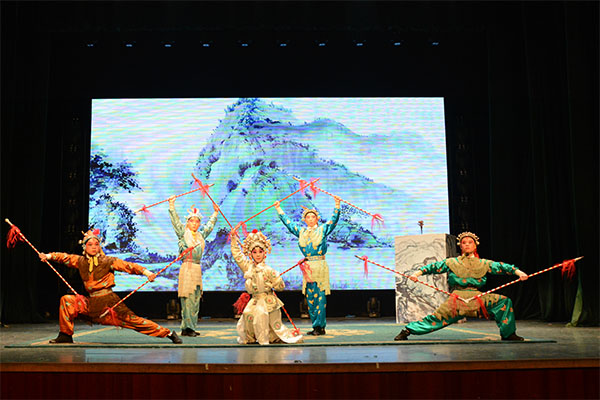 12月19日―20日,永利欢乐娱人城2012级江西婺源徽剧传承班毕业汇报演出暨戏曲表演专业校企合作项目座谈会在丹霞路校区举行。学院副院长王红、婺源县政府副县长江细兰出席,学院教务处、戏曲系和江西婺源徽剧团、县文广新局等部门负责人、部分教师学生以及家长代表观看汇报演出并参加座谈会。
