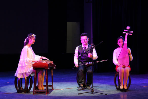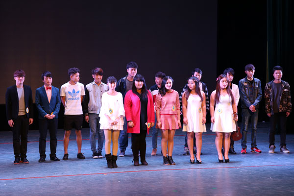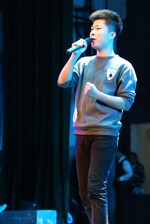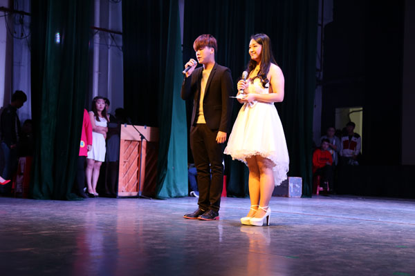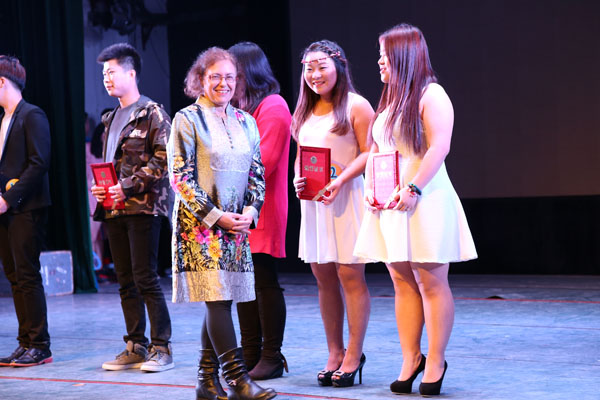 比赛由郭心怡同学的一曲钢琴独奏《梦中的婚礼》拉开了序幕。时佩伟同学带来的《Take me to your heart》展现了我系学生活泼、开朗的台风和演唱风格;女声二人组夏承蕾、洪姗姗自弹自唱《The show》给整场比赛带来一股清新而柔和的风;由殷汉雷同学带来的一首经典英文歌曲《Nothing’s gonna change my love for you》将现场的气氛点燃;最终,余杨洋同学的一首《Sing a long song》摘得了本次英文歌唱比赛的桂冠。在评委评分间隙穿插的伦巴、恰恰双人舞以及琵琶、古筝、二胡合奏等表演节目给比赛增添了气氛,最后由参赛选手们带来的舞蹈《小苹果》更是让观众们大呼精彩。参赛选手和表演者们的精彩表现令评委老师和在场观众都沉浸其中。比赛结束后,国际学院宋怡院长、艺术实践中心孙淮主任以及外籍教师Margaret和三位声乐教师为获奖选手颁奖,并鼓励同学们在今后的学习和生活中再接再厉,取得更大的收获。国际学院英文歌曲比赛在《天下相亲与相爱》的歌曲声中圆满结束。