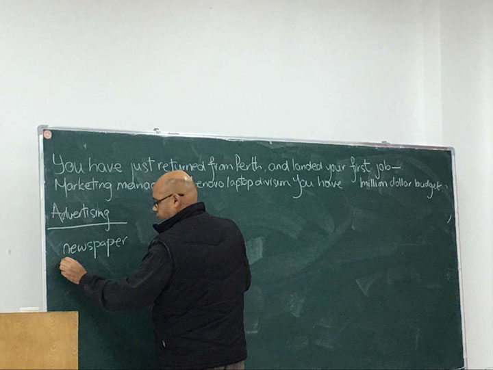 课程共分为八个模块,分别是:1.商业交流技巧;2.交流理论;3.演讲技巧;4.如何有效率地聆听;5.学术及商业的写作方式;6.跨文化交流;7.如何解决冲突;8.思考、推理和研究。安东采取了丰富新颖的课程模式和授课形式,在一周的时间里,让同学们迅速掌握了几个模块的内容,并且时时和同学们互动交流,使每一位同学都参与其中,让课程引人入胜。课程结束后,安东带领同学们进行了一次角色扮演的训练,把课程内容应用到实际生活中。