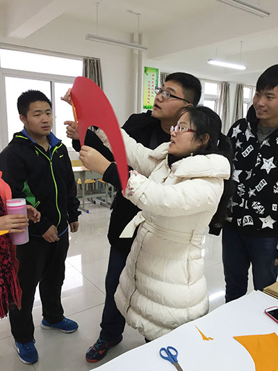 黄巧老师指导学生布置派对现场