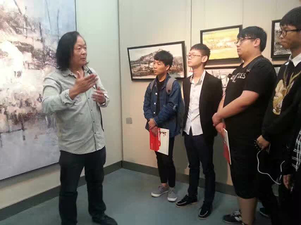 画展上有各种不同类型的画。同学们一边欣赏,一边听徐老师讲解绘画手法、画面情感以及风格等。把课堂搬进美术馆,同学们显得比平常更认真、更积极、更有活力。展馆中令同学们印象最为深刻的便是徐老师的作品--《徽州印象》。徐老师走遍皖南地区的大街小巷,经历了长时间的思考、做了大量的积累,用朴素、善良、勤劳来体会和探索,完善着“心之原声”、“无所容形”,画出“天地人之大美”。