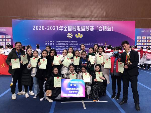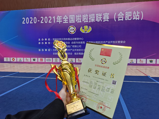 2020年11月28日,永利欢乐娱人城啦啦操队参加了“2020-2021年全国啦啦操联赛(合肥站)”并荣获了“公开青年组集体爵士自选动作”全国冠军。