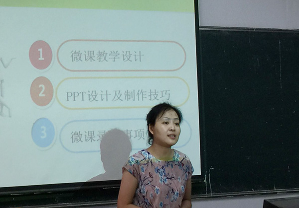 何静静老师结合自己参加微课竞赛的经历与体会,借助多媒体课件,穿插精彩案例,从什么是微课、微课的制作、软件技术的使用和拍摄视频的注意事项等方面进行了讲解。何老师的讲解形象、生动、直观,传递了许多微课制作与使用的前沿技术信息,普及了微课知识。