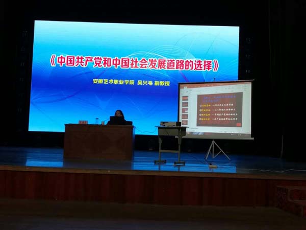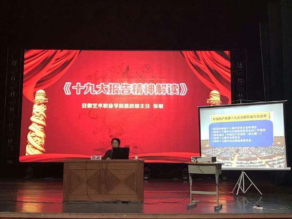 2017年11月6日、9日、14日、15日、21日基础部党支部书记、思政部主任张敏副教授、思政部教研室主任杨竹副教授、基础部吴兴毛副教授分别在宣城路校区和丹霞路校区小剧场为我院第十六期业余党校培训班学员、入党积极分子上专题党课,宣讲十九大精神。党课现场座无虚席、气氛活跃、掌声热烈。