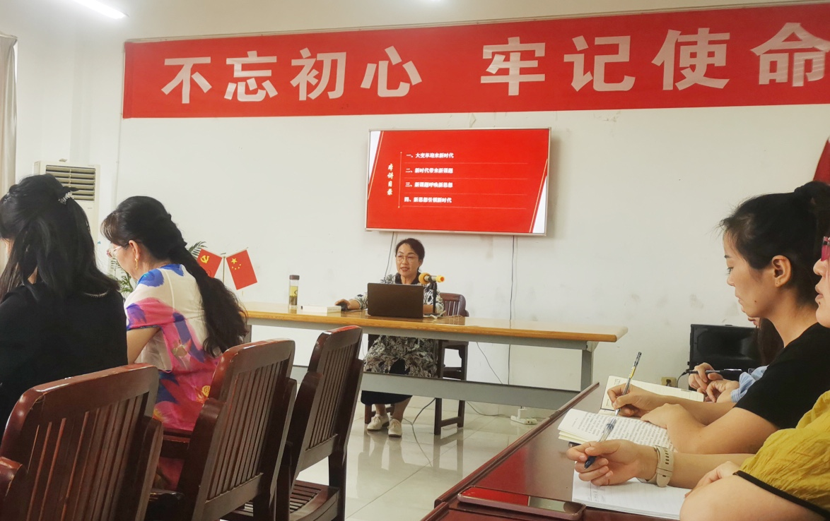 2022年9月7日下午,人文学院党支部召开党员大会,党支部书记张敏以“新时代 新思想 新飞跃”为主题,讲授习近平新时代中国特色社会主义思想专题党课,支部全体党员同志参加学习会议。