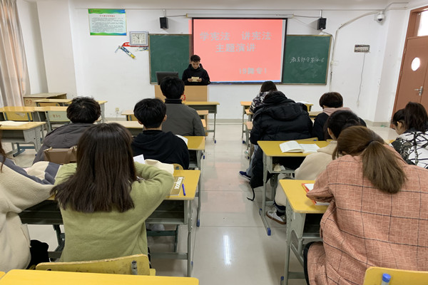部分思政教师开展了“学宪法 讲宪法”主题演讲活动,演讲过程中,同学们声情并茂、慷慨激昂,从自己的视角阐述了对宪法的理解和感悟,演讲内容紧扣主题、贴合实际,用一个个生动的例子告诉了同学们知法守法遵法的重要性。演讲结束后,组织同学们学习习近平总书记关于全面依法治国的重要论述,要主动宣传依宪治国思想,自觉维护宪法权威。