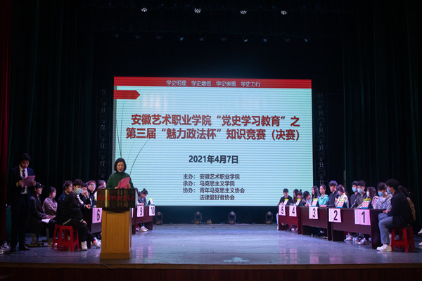 2021年是中国共产党百年华诞,是实施“十四五”规划开局之年。为纪念中国共产党成立100周年,回顾党的光辉历程,营造学党史、知党情、跟党走的浓厚氛围,4月7日晚,由马克思主义学院承办,青年马克思主义协会和法律爱好者协会协办的党史学习教育系列活动之第三届“魅力政法杯”知识竞赛(决赛)在舞蹈楼小剧场举行,学院党委委员、副院长王红,人文学院党支部书记、马克思主义学院院长张敏,各二级学院党总支书记、分管学生工作的副院长出席比赛。