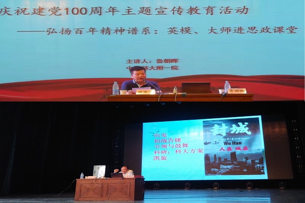 为弘扬中国共产党百年精神谱系,发挥优秀共产党员先锋模范作用,有效增强青年学生的政治认同、思想认同、情感认同,6月7日上午,马克思主义学院举办的“英模·大师”进思政课堂——“战疫先锋”主题报告会在舞蹈楼小剧场举行。“安徽省优秀共产党员”“安徽省抗击新冠肺炎疫情先进个人”获得者,中国科技大学附属第一医院南区党委书记鲁朝晖应邀为师生作主题报告。永利欢乐娱人城纪委书记姚成秀主持报告会。