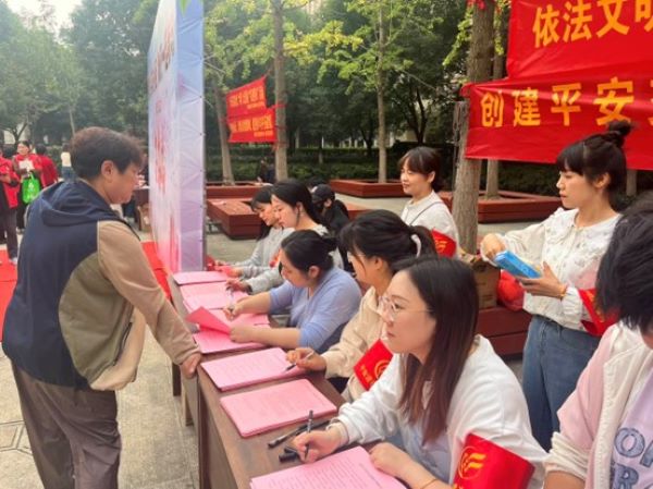 此次活动围绕“建设平安小区 我们一起参与”的主题,集中在紫御府中心花园开展“平安建设进小区”启动仪式和经开区莲花社区“六情”大走访暨“书记接待日”宣传活动。并由社区党员代表现场作守纪榜样宣誓。在职党员通过面对面宣讲、现场解答等方式积极向辖区内居民普及电信诈骗知识,增强群众法治意识,提升群众防范能力。