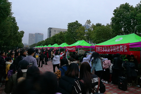 11月29日至12月1日,在院学生处团委的部署和院学生会的统一组织下,我院2016年度学生社团统一招新活动分别在丹霞路校区和宣城路校区举行。此次活动共有13个学生社团参与。院党委委员、副院长王红亲临活动现场,并与部分社团同学亲切交谈。