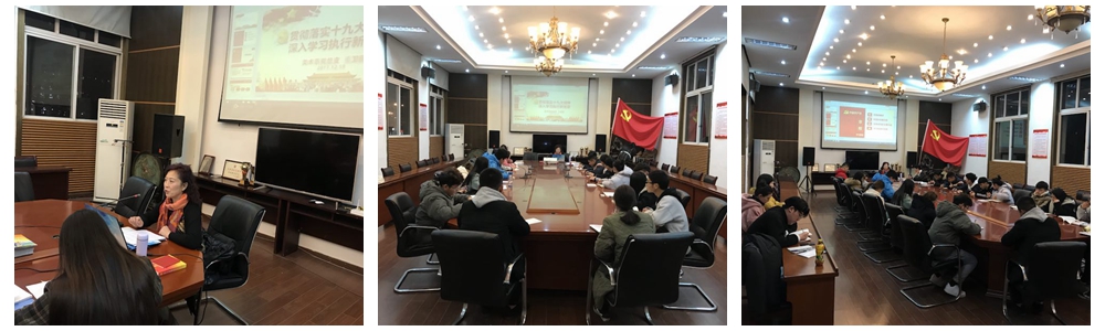 为了进一步学习十九大精神,培养合格学生党员,12月19日晚18:30,学院十九大宣讲团成员美术系党总支书记董卫丽在宣城路校区B楼会议室进行了《贯彻落实十九大精神深入学习执行新党章》。