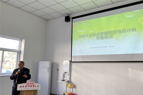 为进一步提升师生预防电信诈骗的意识和能力,保护师生的人身和财产安全,11月10日,学院邀请了合肥市经开区莲花社区委主任沈中然在室内活动中心为全体辅导员开展了防电信网络诈骗专题培训会。培训会由学生处副处长卞振武主持。