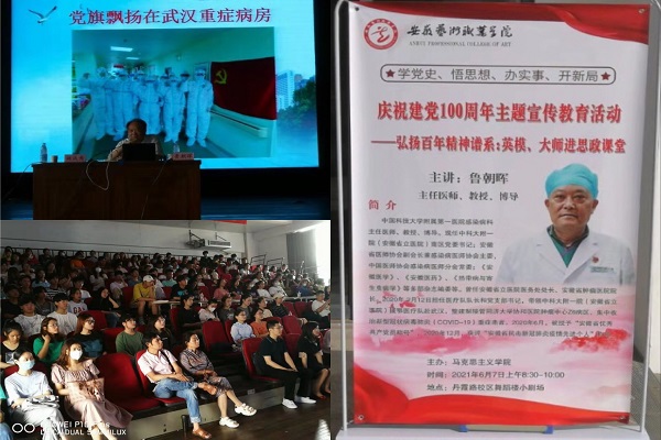 为弘扬中国共产党百年精神谱系,发挥优秀共产党员先锋模范作用,有效增强青年学生的政治认同、思想认同、情感认同,6月7日上午,马克思主义学院举办的“英模·大师”进思政课堂——“战疫先锋”主题报告会在舞蹈楼小剧场举行。“安徽省优秀共产党员”“安徽省抗击新冠肺炎疫情先进个人”获得者,中国科技大学附属第一医院南区党委书记鲁朝晖应邀为师生作主题报告。永利欢乐娱人城纪委书记姚成秀主持报告会。