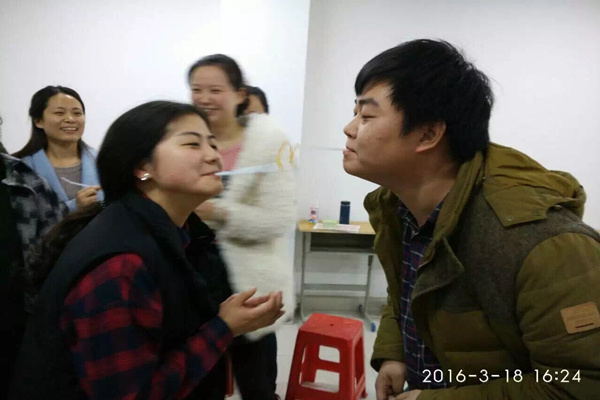 理论学习结束后,在郑教授热情的带领下,班主任和辅导员们进了行团体实操训练,认真体验了团体心理辅导的作法及效果,并结合工作体会积极分享活动感悟。