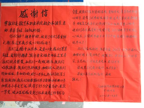 我院师生们的热情深深地感动了古榄小学的师生和家长,古榄小学校长亲笔书写了一封满怀深情的感谢信,极大的鼓舞了我院广大师生,大家纷纷一起约定,“古榄小学,明年我们再相会”。