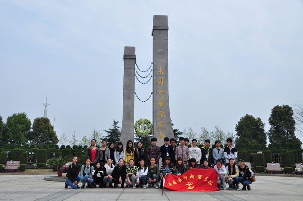 2013年3月30日早上7:00,我院中专管理中心学生会共33人在中专中心团支部书记田琦老师的带领下,怀着激动的心情,迎着和煦的春风,来到大蜀山烈士公墓,为长眠在那里的革命先烈们扫墓,以寄托同学们深深的缅怀之情。