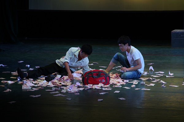 紧接着,中专部我的中国梦”晚会在开场舞《阳光路上》拉开了序幕。今年的文艺汇演比起往届,增添了许多亮点:主持人是由四位同学共同担任。舞美方面采用了追光、PPT背景等方式,规模、质量也是历年之重。此次晚会的节目内容形式多样、丰富多彩。吉他社带来的《海阔天空》再现经典,也展示了中专部社团的实力。歌曲《爱是永恒》向一个月前遭受雅安地震灾害的同胞表达最有力的支持和最诚挚的祝福;歌舞《天下无双》在优美的歌声中让所有观众获得了视觉和听觉的双重享受;舞蹈《蒲公英》更是营造了唯美的舞台效果,让人为之赞叹;话剧《人质》用淋漓的演技展示现实生活中的无奈和挣扎,引人深思;原创小品《我要上剧场》恢谐生动的表演引发一阵阵的笑声;舞蹈《Dangerous》用精湛的舞技把整场晚会推向了高潮,赢得了现场的一阵阵掌声;还有诸多节目也受到了同学们的一致好评。掌声和欢呼声此起彼伏,台上台下成了一片激情四溢的海洋,将晚会气氛推向高潮。中专部的学生们用他们真诚的表演和热情的歌唱表达了他们对学院的热爱,对梦想的追求。