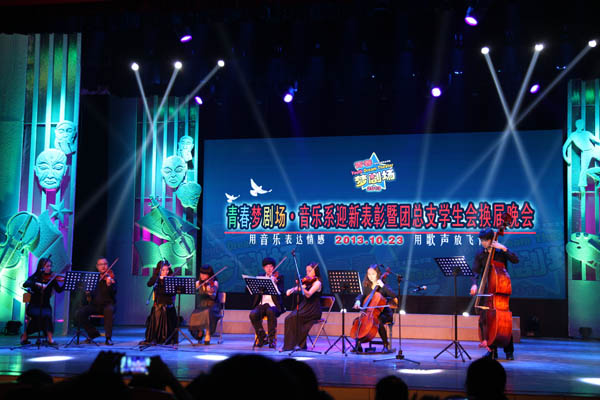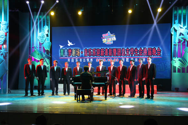 在院领导的高度重视和大力支持下,由学院艺术中心精心策划、包装的永利欢乐娱人城大型校园舞台栏目 “青春梦剧场”第一阶段全院学生实践活动以音乐系的迎新晚会演出拉开序幕。活动于10月23日在宣城路校区实验剧场开展,学院党委书记王瑞、纪委书记冯新平、副院长王红、学生处处长梅晓、团委书记秦励和音乐系相关领导出席了颁奖活动并观看演出。本场演出师生同台,内容精彩纷呈、编排创意独特,充分表达了师生之间真挚的情感,体现了音乐系师生高超的艺术水平和扎实的艺术功底,演出中不时传来观众雷鸣般的掌声。音乐系几位老师的独唱和演奏更是将演出推向了一个又一个高潮。“青春梦剧场”首场活动取得圆满成功。