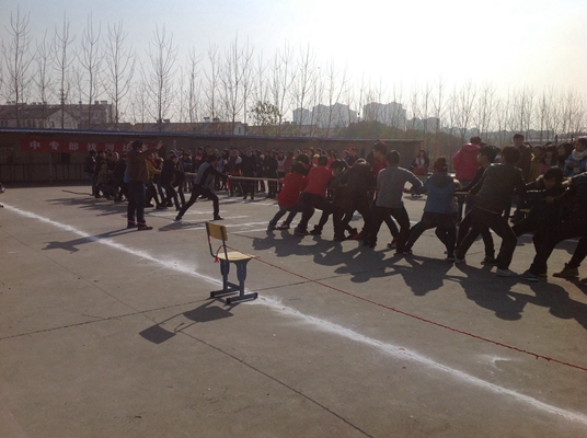 为丰富学生的课余文化生活,增进学生之间的交流,培养学生的团结意识。2013年12月10日,中专部在学校操场举办了拔河比赛,中专部六个系全部积极参与到其中.