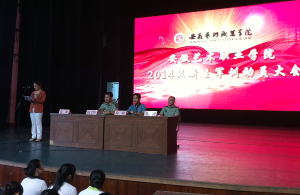 梅晓在动员讲话中,首先代表安艺师生向承担这次军训任务的教官们表示热烈的欢迎,向参训的2014级新同学致以亲切的问候。他介绍了安艺的办学历史、雄厚的师资队伍以及安艺取得的优异成绩,鼓励同学们在新的环境中要积极调整心态,尽快完成角色转变,以饱满的精神状态迎接军训生活;他希望同学们在新的环境中要提高自己的身体素质,要充分发扬吃苦耐劳的精神;军训是一个艰苦的过程,是对同学们意志力的考验,希望同学们要真正明白军训的意义,严格要求自己、严格遵守训练规定,以饱满的热情投入到训练中去,圆满完成训练任务。