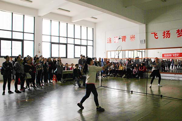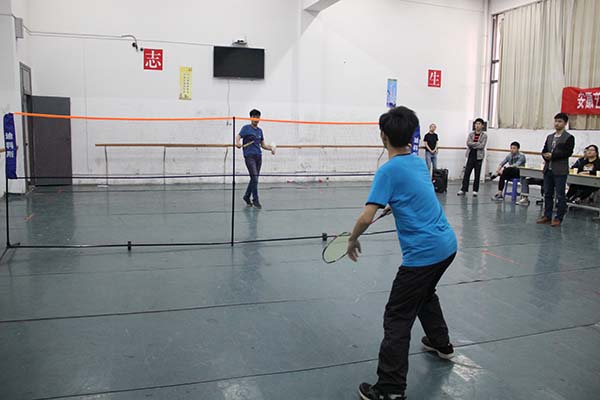 为深入贯彻落实共青团中央、教育部、国家体育总局、团省委、全国学联《关于进一步推进大学生“走下网络、走出宿舍、走向操场”主题群众性课外体育锻炼活动的通知》精神,丰富我院体育运动文化生活,增强广大同学的身体素质,展现安艺学子的青春活力。4月21日中午我院综合楼练功房内热闹非凡,由学生处、院团委主办,院学生会承办的院 “安艺杯” 羽毛球比赛在此如火如荼地进行。全院8个团总支组建了8支代表队,比赛分男单、女单进行比赛,110多名同学参加了比赛。