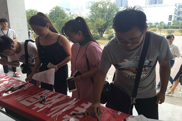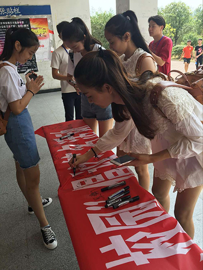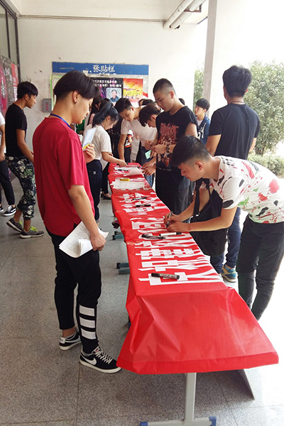 本次活动得到了学院各级领导、老师的大力支持和同学们的积极响应,大家纷纷在“爱我安艺 美化校园”的横幅上庄重地签上自己的名字,并表达出对活动的支持和自己的决心,给刚刚入校的新生做出了表率,带动着他们积极参与本次倡议签名活动。活动期间,我们还给每位同学分发了一份“爱我安艺 美化校园”的倡议书。